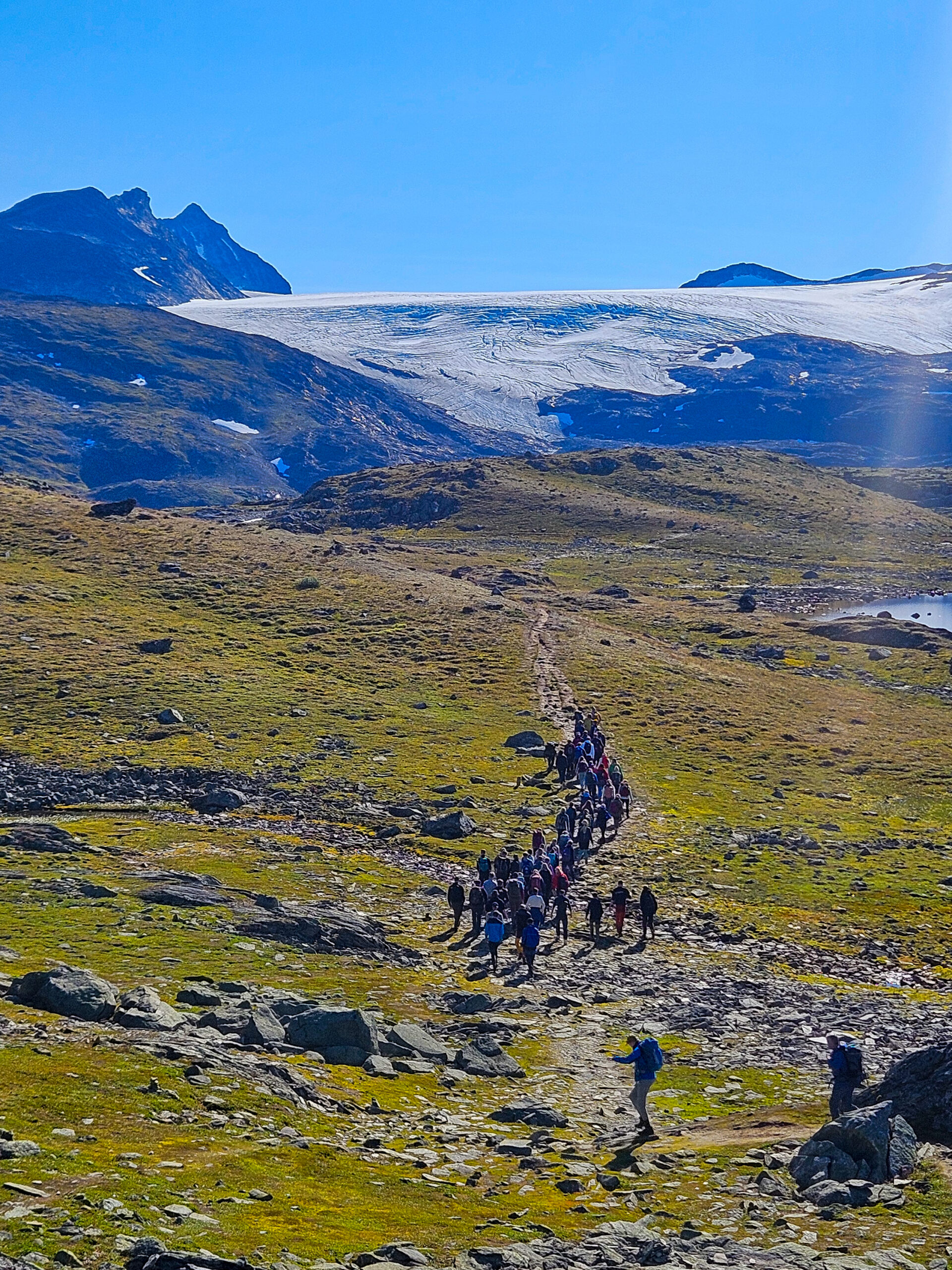 Med haustklar luft og sol frå blå himmel fekk vi oppleve fjellet på sitt beste. Høgdepunktet var fotturen inn til Bøverbreen, der naturen vart klasserommet vårt for dagen. Undervegs arbeidde vi med geografi, biologi, friluftsliv, lokalhistorie og geofag – ei praktisk tilnærming som skapte både læring og engasjement.